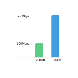 - Toplam kullanılabilir 1.2Gbps bant genişliği için eş zamanlı 2.4Ghz 300Mbps ve 5GHz 867Mbps bağlantı